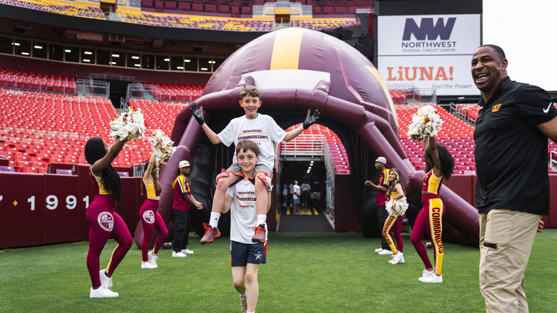 Each day is divided between drills, stations and games (alongside water breaks, team meetings and white-board sessions). And each camp week will have a guest appearance by a Washington Commanders Legend!!