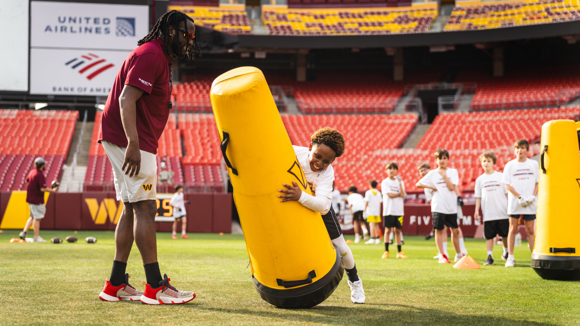 Each day is divided between drills, stations and games (alongside water breaks, team meetings and white-board sessions). And each camp week will have a guest appearance by a Washington Commanders Legend!!